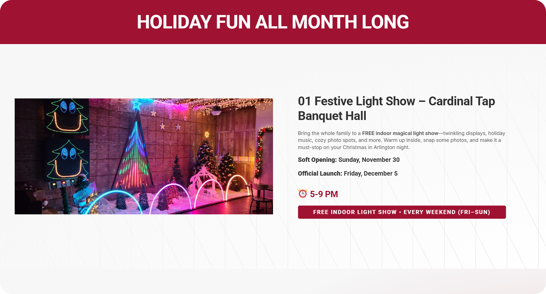 The primary goal of Christmas in Arlington was to create a centralized, easy-to-understand platform that explained what was happening, when it was happening, and how people could participate.