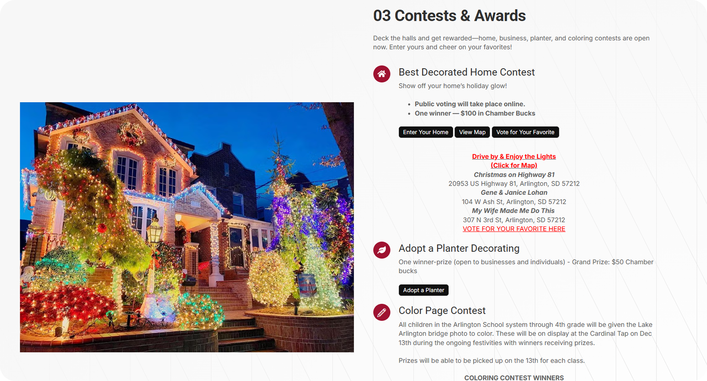 Christmas in Arlington is a community-driven holiday event organized by the Arlington Aream Chamber of Commerce. The event brings together local businesses, families, and visitors through festive activities, contests, and a “Shop Local” passport program designed to support small businesses during the holiday season.